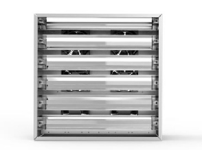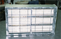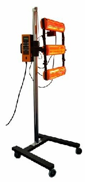 FIRC met een uitwendige afmeting 500 x 500 x 150 mm, voorzien van 6 of 7 infraroodlampen en 6 koelventilatoren.