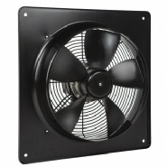 HXBR Ecowatt axiale wandventilator. Montage plaat in staal met zwarte polyester coating, kunststof waaier.